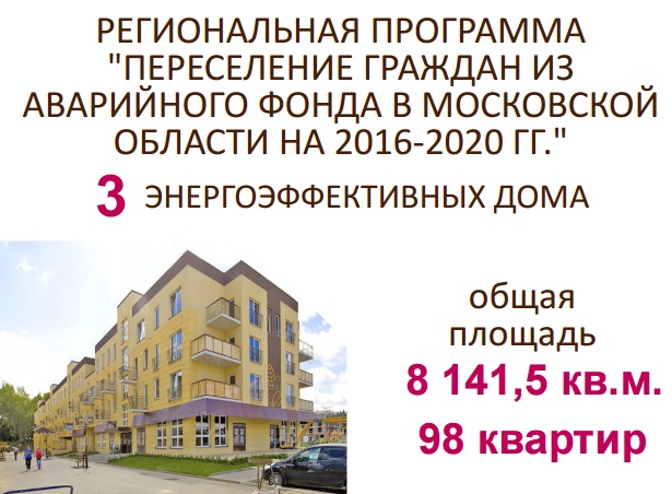 В 2016 году мы вступили во второй этап региональной программы "Переселение граждан из аварийного фонда в Московской области на 2016-2020гг."