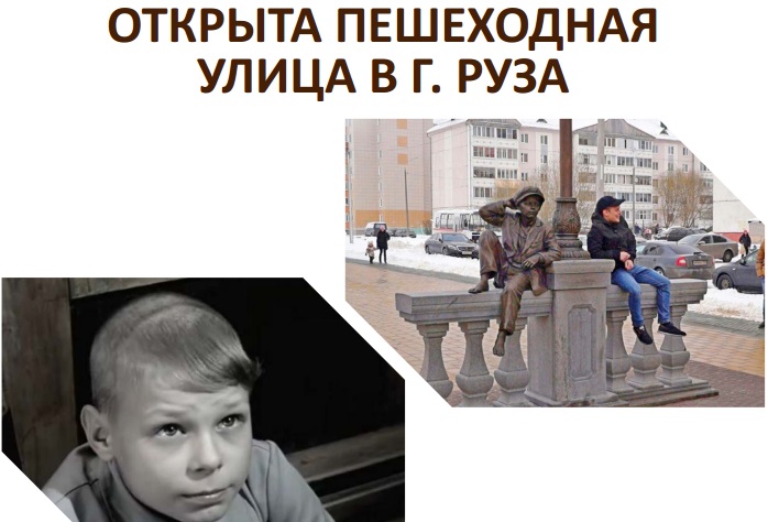 В 2016 году открыта пешеходная улица в г. Руза – Рузский Арбат – с установкой памятника герою фильма «Ликвидация» Мишке-карасю, который сказал маршалу Жукову: «Я из Рузы». В 2017 году работы по благоустройству пешеходной зоны будут продолжены.