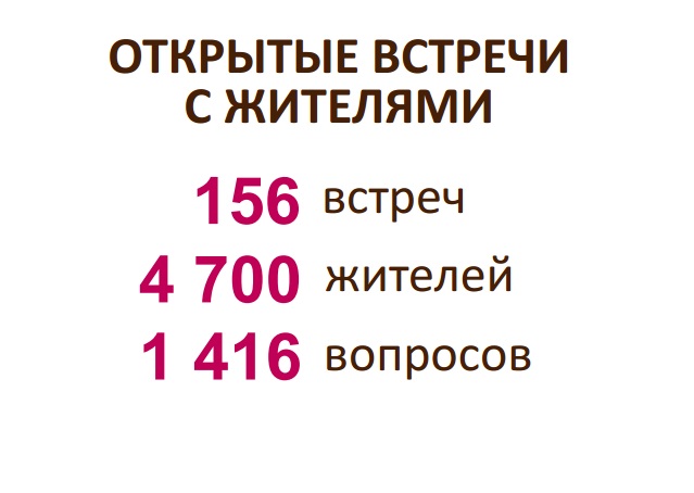 Основным принципом нашей работы является открытость власти. Я ежемесячно провожу открытые встречи с жителями, которые проходят в формате «вопрос-ответ».
