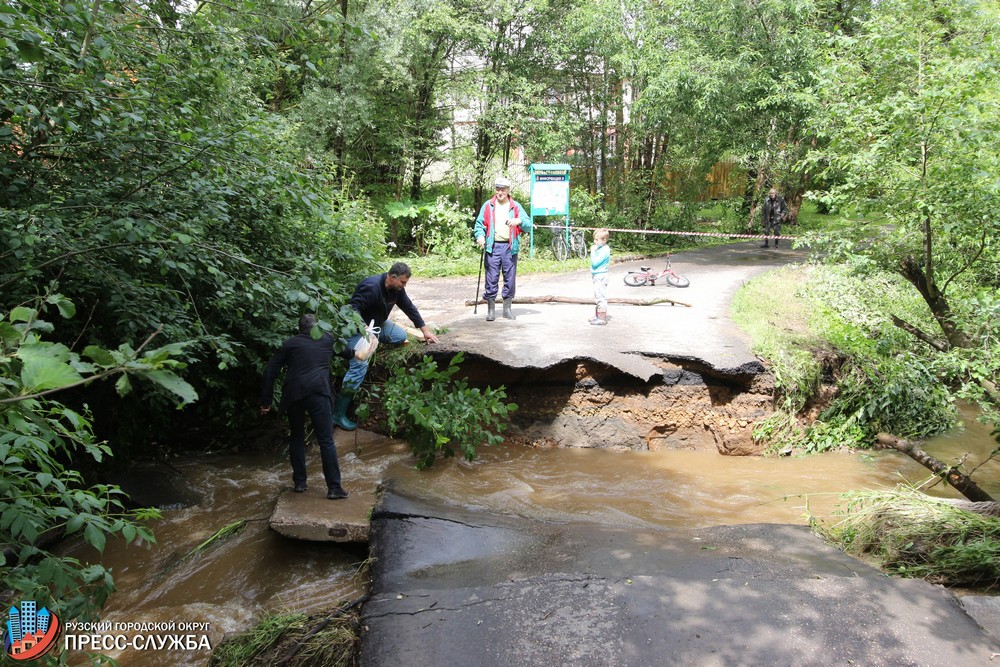 В деревне Румянцево Рузского городского округа обильными потоками воды после ливня размыло мост, который является единственным въездом в деревню. Как сообщил Глава Рузского городского округа Максим Тарханов, в результате происшествия никто не пострадал, однако отрезанными от внешнего мира осталось 75 домовладений. В Рузском округе создан штаб по устранению чрезвычайной ситуации.