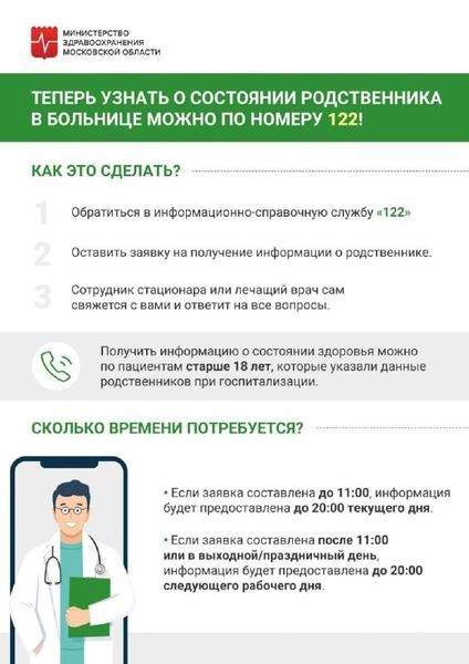 Жители Подмосковья могут узнать о состоянии родственника в больнице по номеру 122