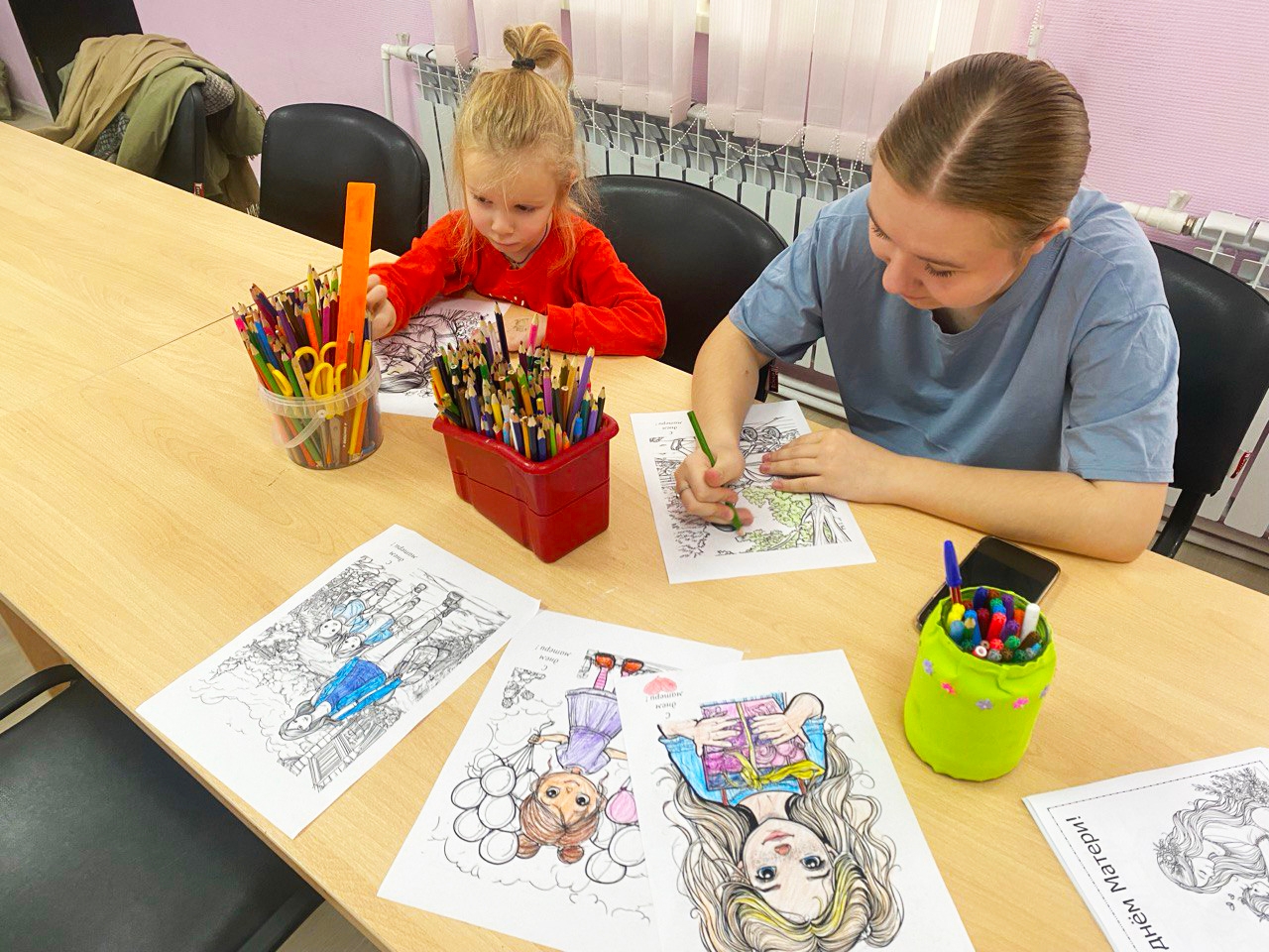 Дети с большим удовольствием принялись за рисование портретов своих мам и цветов для них. В своих работах юные художники смогли передать не только внешнее сходство, но и безграничную любовь к своим мамам.