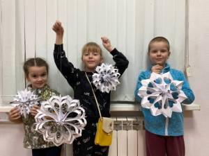 Ребята с увлечением вырезали снежинки по различным шаблонам. Каждый старался сделать свою снежинку уникальной, добавляя в нее элементы своей фантазии. В результате у всех получились прекрасные ажурные снежинки, которые словно оживали в руках своих мастеров.