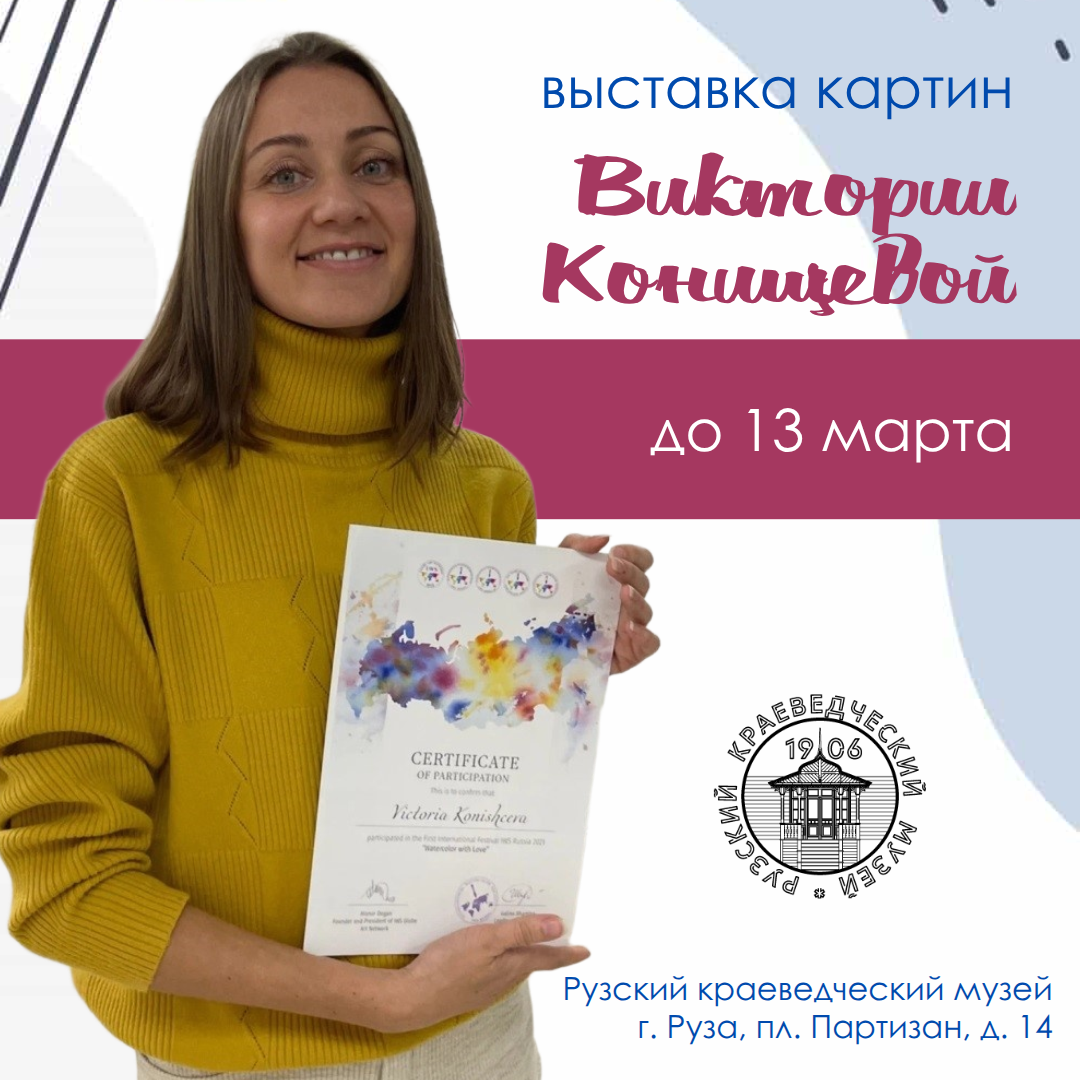 Виктория Конищева является признанным мастером акварели, особенно в области смешанной техники. Её работы отличаются тонким колористическим решением, композиционной гармонией и глубоким эмоциональным содержанием. В своих произведениях она часто обращается к мотивам родного города, церквей, монастырей и городских улочек, создавая живописные образы, которые вызывают у зрителя чувство ностальгии и умиротворения. Работы художницы регулярно экспонируются на выставках в Москве и Подмосковье. В Рузе оценить её работы можно будет до 13 марта.