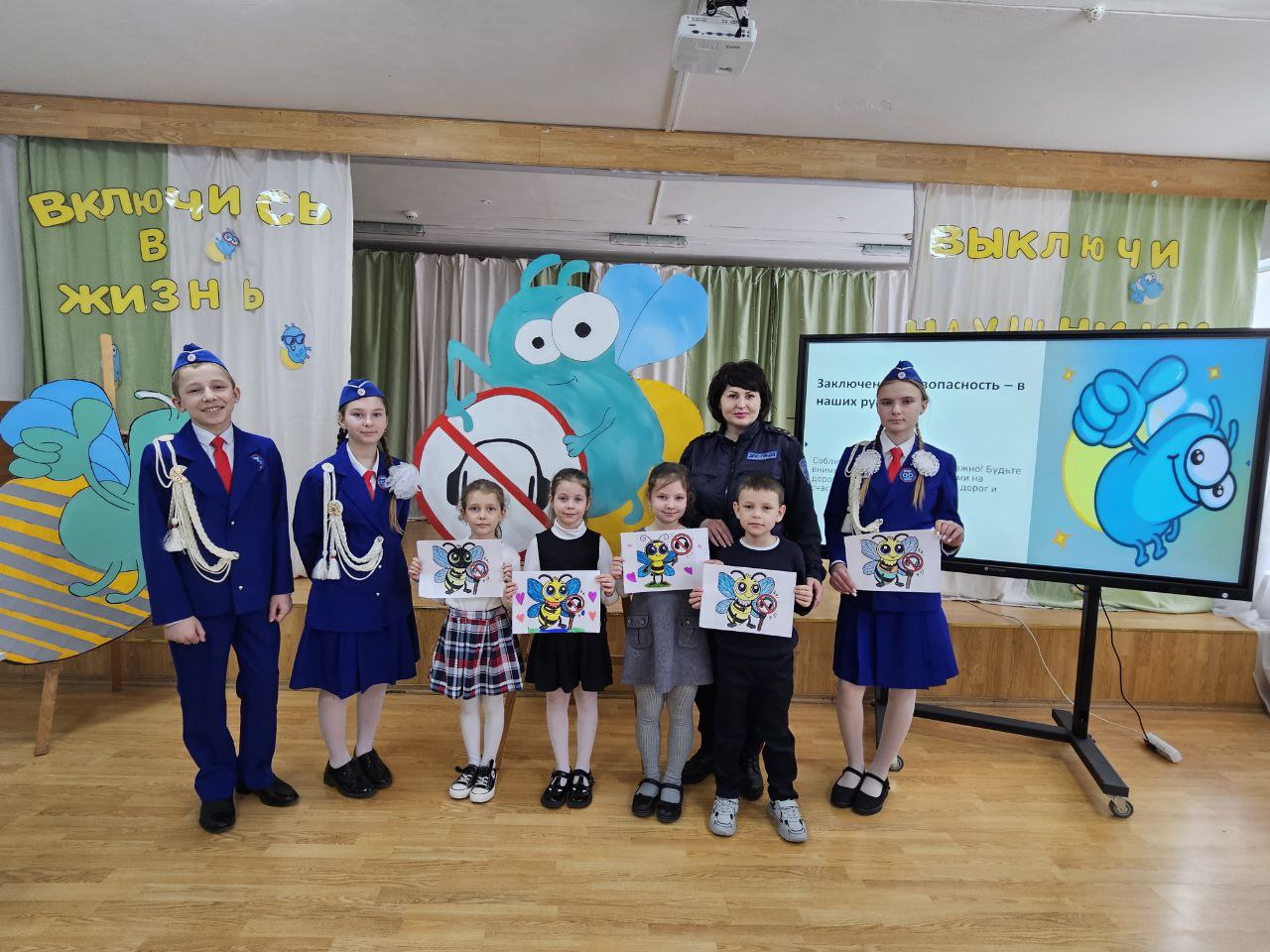 На календаре уже весна, скоро настанут тёплые дни, солнышко будет светить всё ярче, и дети станут больше гулять. ЮИДовцы повторили с ребятами правила дорожного движения, выяснили, насколько важно быть внимательным на дороге, призвали не отвлекаться на телефоны и обязательно снимать наушники!
