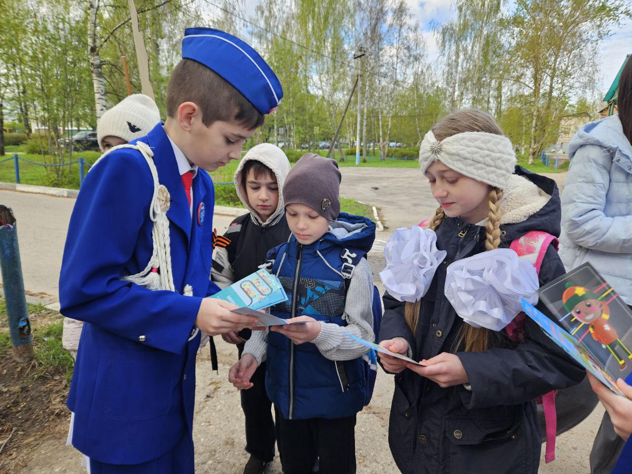 Юные инспекторы повторили с учениками правила дорожного движения, ещё раз напомнили и детям, и родителям, что дорогу нужно переходить только по переходу, а передвигаясь на велосипедах, самокатах и СИМ, необходимо спешиваться при пересечении проезжей части. Всем раздали красочные листовки.