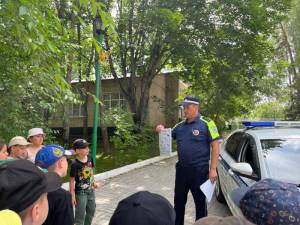 Гости в погонах ответили на многочисленные вопросы ребят и напомнили им правила безопасного поведения на дорогах летом. Они также рассказали о потенциальных «дорожных ловушках» и объяснили, как правильно вести себя во дворах. В завершение школьники получили тематические памятки по правилам дорожного движения.
