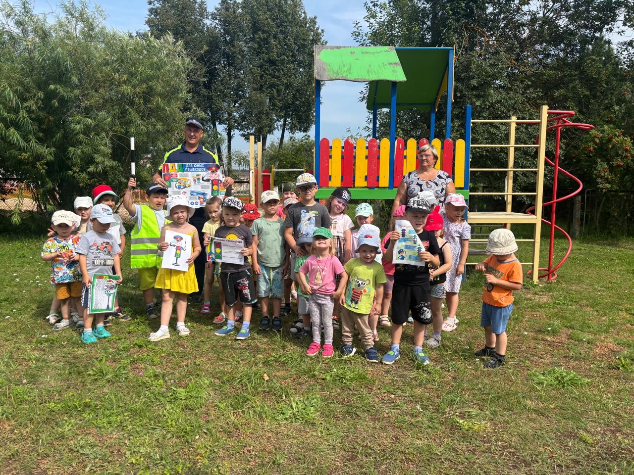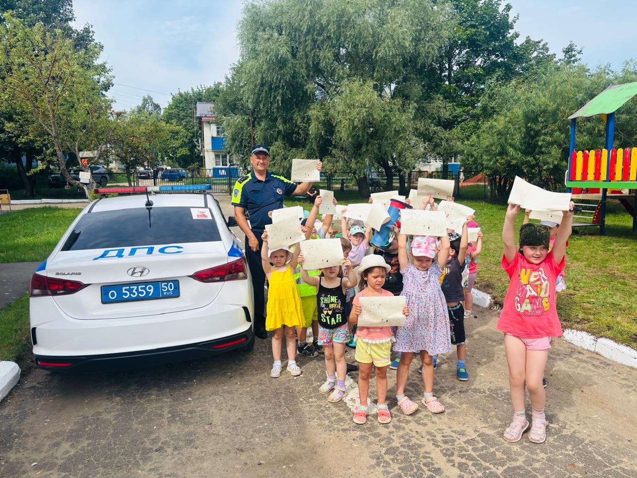 В завершение каждый получил символические подарки от сотрудника Госавтоинспекции – рисунки и раскраски с изображением светофора.