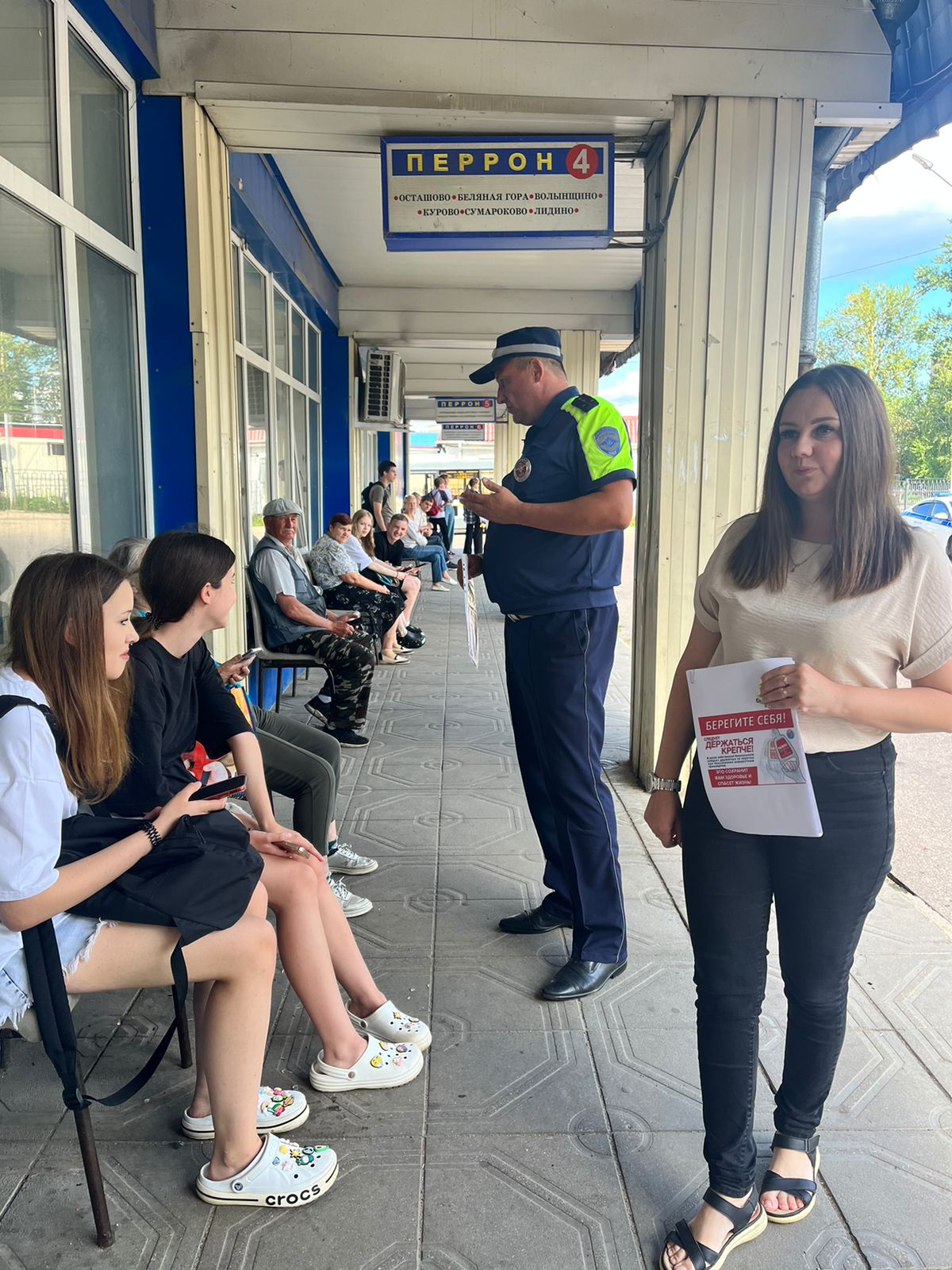 Сотрудники отдела Госавтоинспекции ОМВД России «Рузский» и дорожного отдела администрации Рузского муниципального округа провели на автостанции Рузы пропагандистское мероприятие «Берегите себя!», направленное на профилактику дорожно-транспортных происшествий с участием общественного транспорта и исключение случаев получения травм пассажирами.