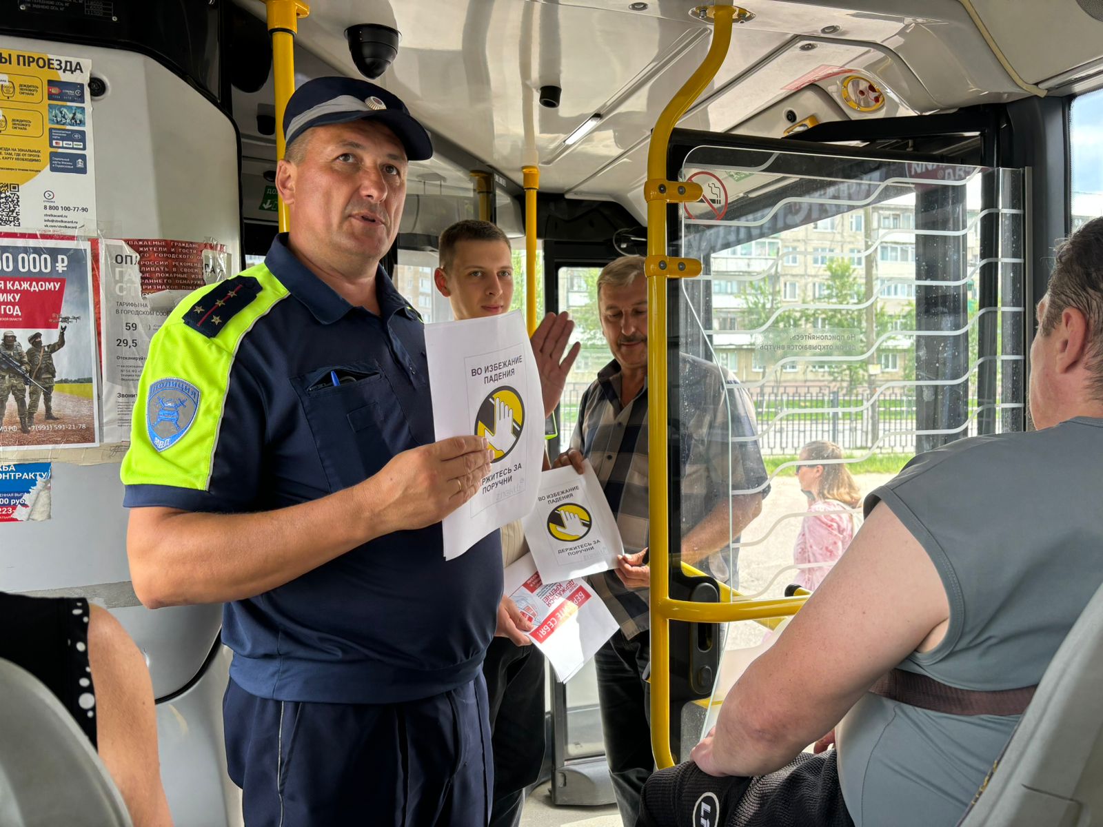 Организаторы акции напомнили пассажирам правила безопасного поведения на дорогах и при проезде в общественном транспорте. Довели информацию о случаях получения травм пассажирами при падении во время движения и напомнили о том, что во время поездки необходимо держатся за поручни. Также был проведен инструктаж водительского состава перед отправкой автобусов по маршрутам. Пассажирам и водителям вручили тематические листовки.