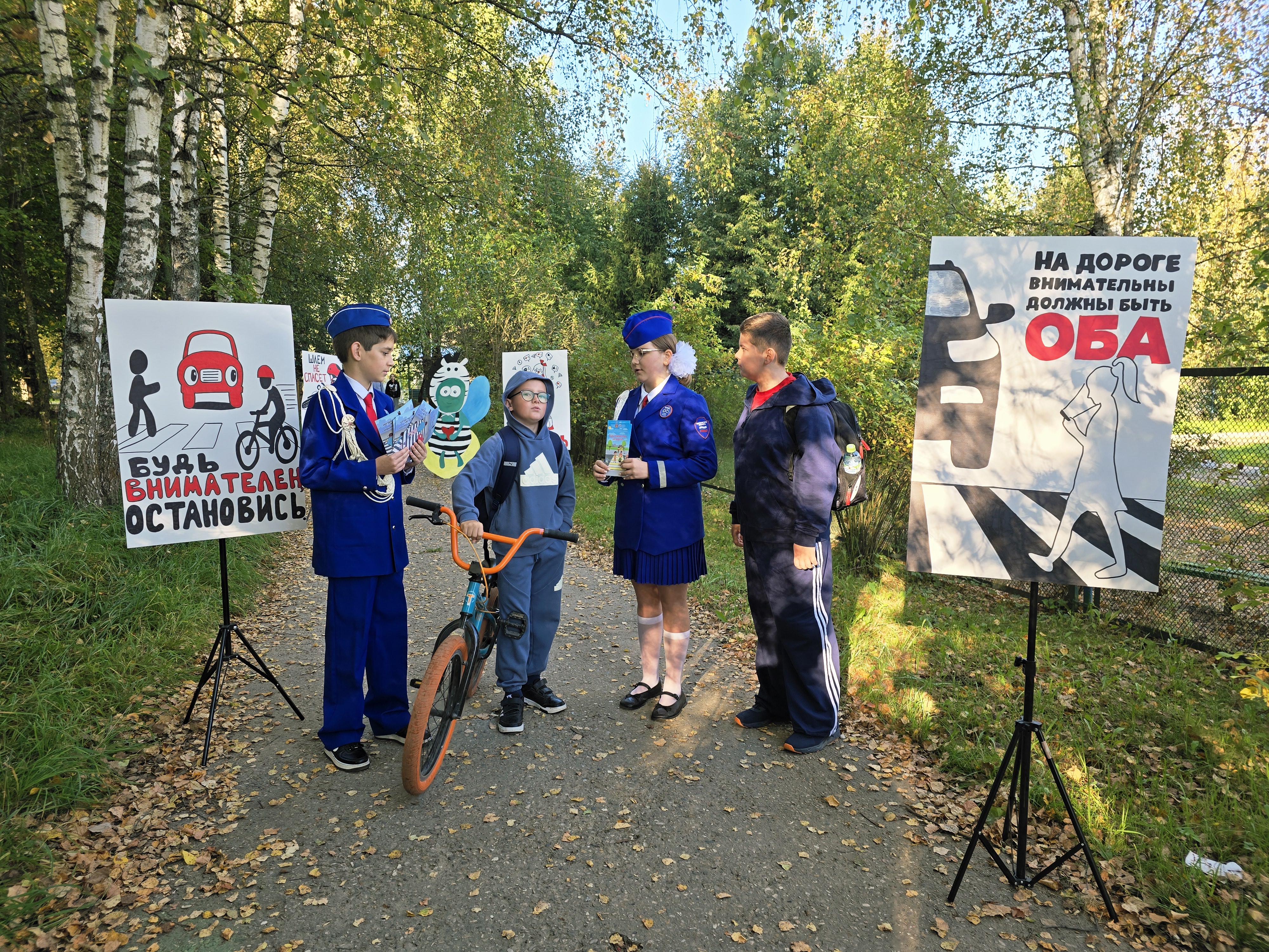 Юные инспекторы движения под руководством своих наставников В.Д. Петровой и А.А. Несмеяновой изготовили серию плакатов, которые акцентируют внимание на бдительности при переходе проезжей части, недопустимости использования мобильного телефона и наушников, опасности питбайков на дорогах общего пользования и взаимной ответственности водителей и пешеходов.