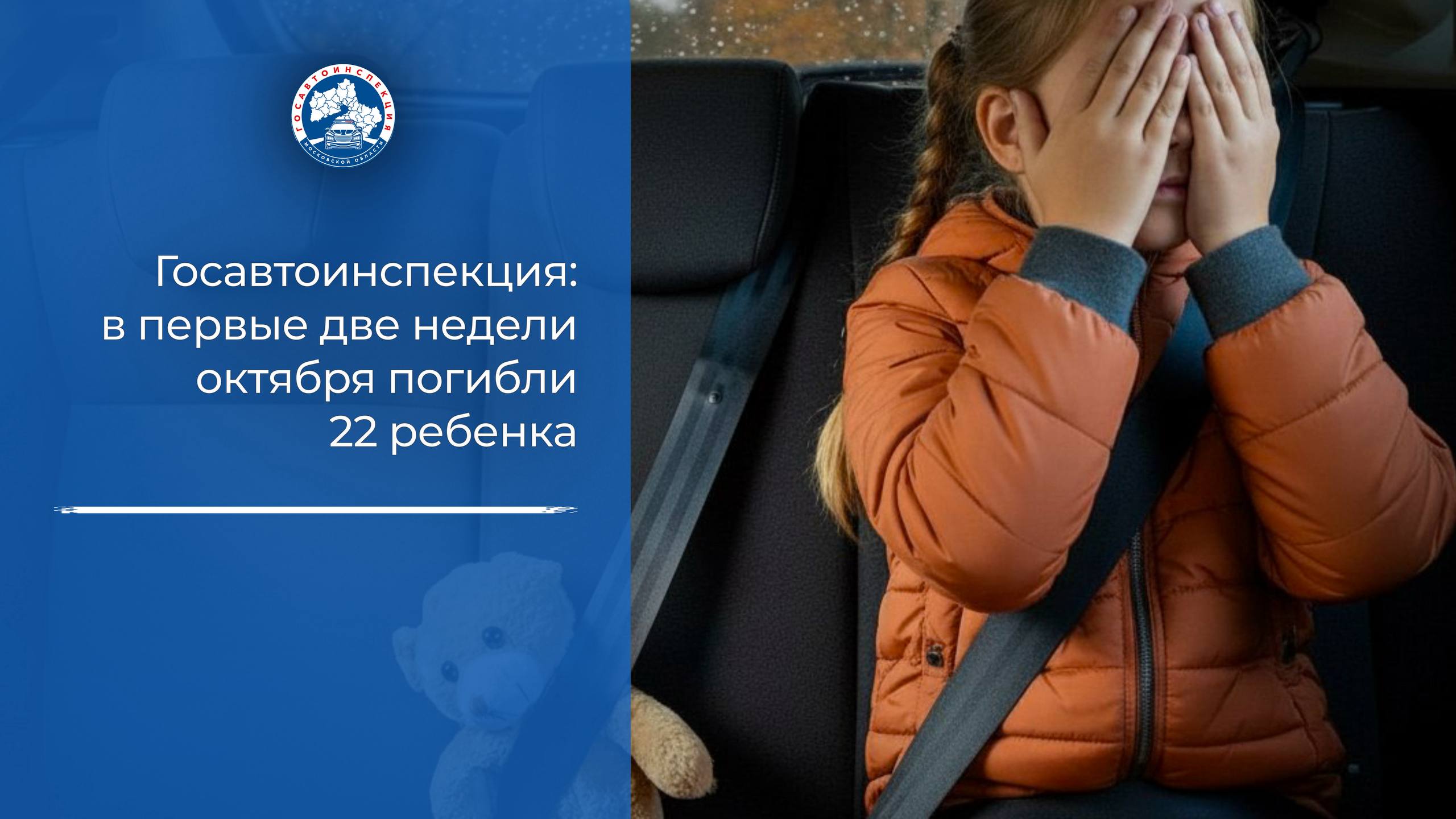 С 1 по 12 октября на дорогах России зафиксировано 607 ДТП с участием несовершеннолетних. В этих происшествиях погибли 22 ребенка, а 986 юных участников дорожного движения получили ранения.