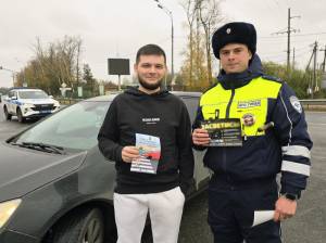 Законопослушным водителям инспекторы вручили тематические листовки и желали счастливого пути.