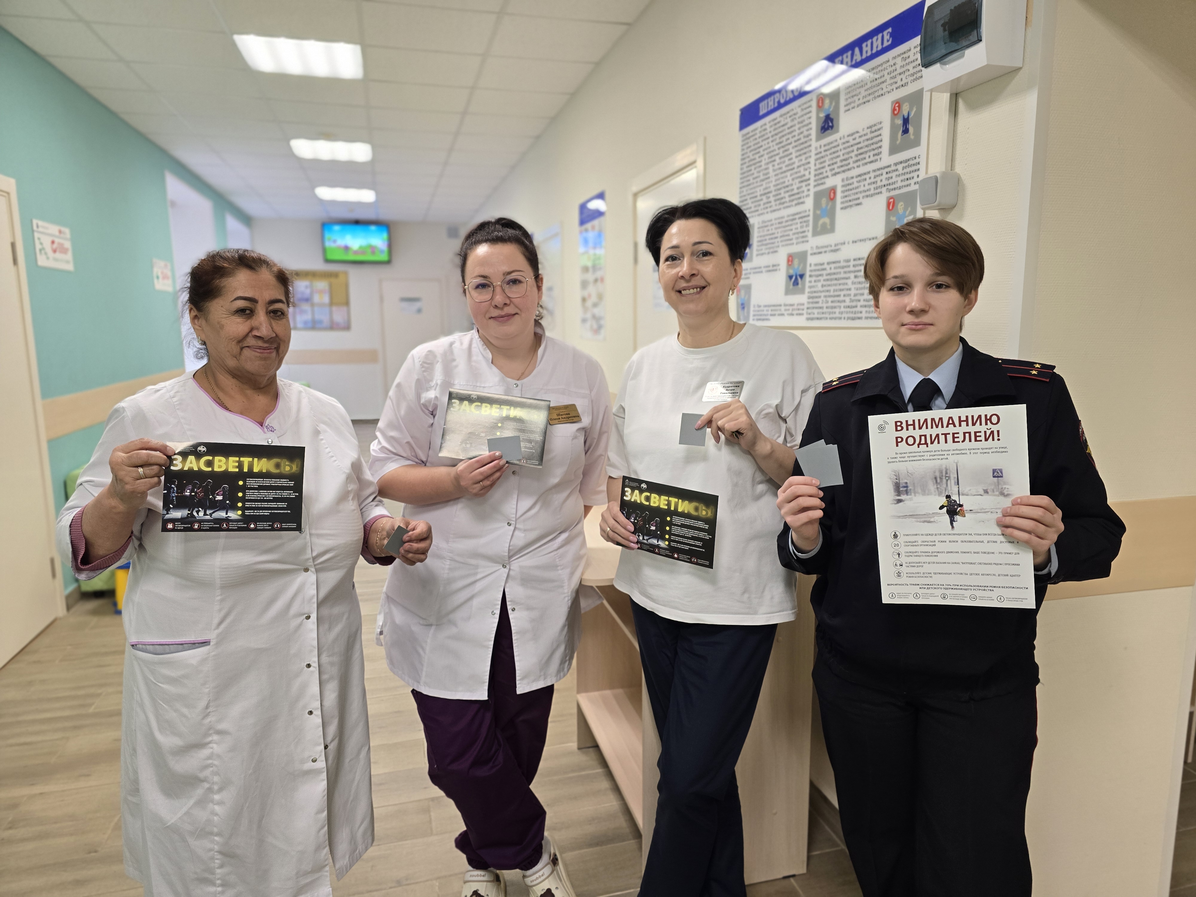 В рамках акции на информационных стендах медицинского учреждения были размещены тематические листовки с актуальными правилами безопасности для пешеходов.