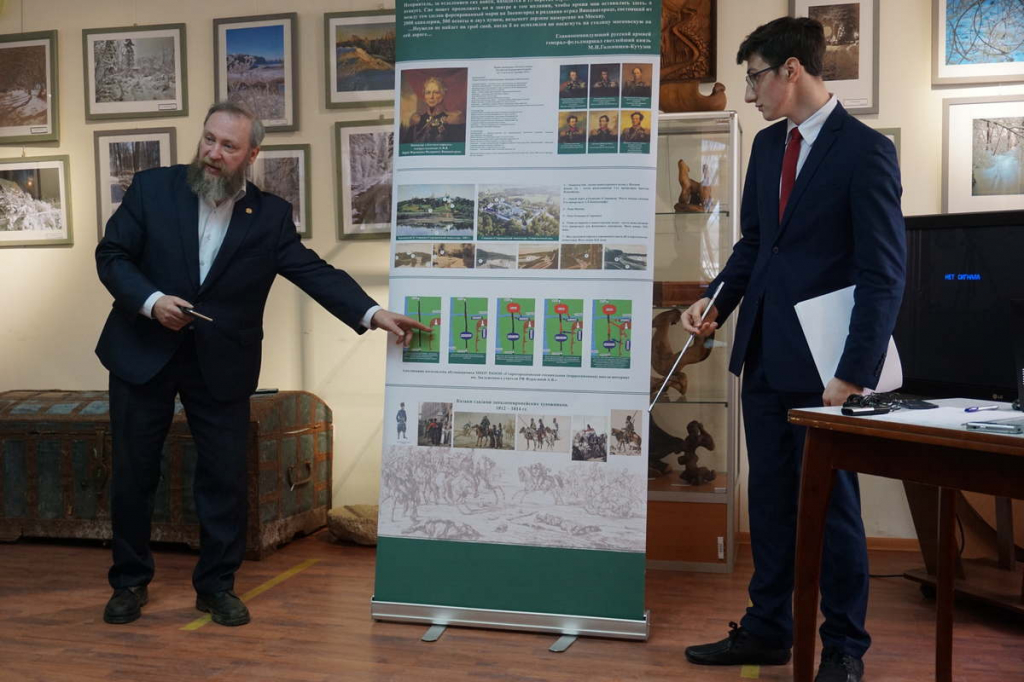 Студент МГОУ Виталий Шелепень рассказал о событиях, которые проходили в усадьбе Кожино в 1812 году, а член правления Можайского объединения краеведов Мэлс Дехканов и председатель объединения Максим Кошкин ознакомили участников конференции с гравюрами Можайска и военного костюма Русской армии времен Отечественной войны.