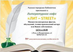 Рузская городская библиотека приглашает своих читателей 12 ноября в 16.00 посетить занятия в изостудии, мастер-класс по плетению и литературное кафе «Лит-STREET».
