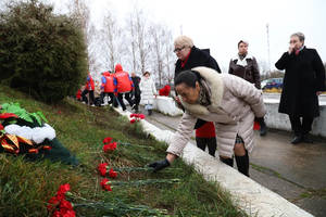 Собравшиеся почтили память погибших воинов минутой молчания и возложили цветы и венки к мемориалу Славы.