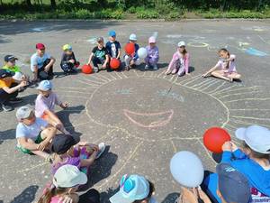 В летнем лагере «Город Радость» в Никольской школе Рузского городского округа в День защиты детей ребята играли, танцевали, рисовали на асфальте, участвовали в спортивных эстафетах.