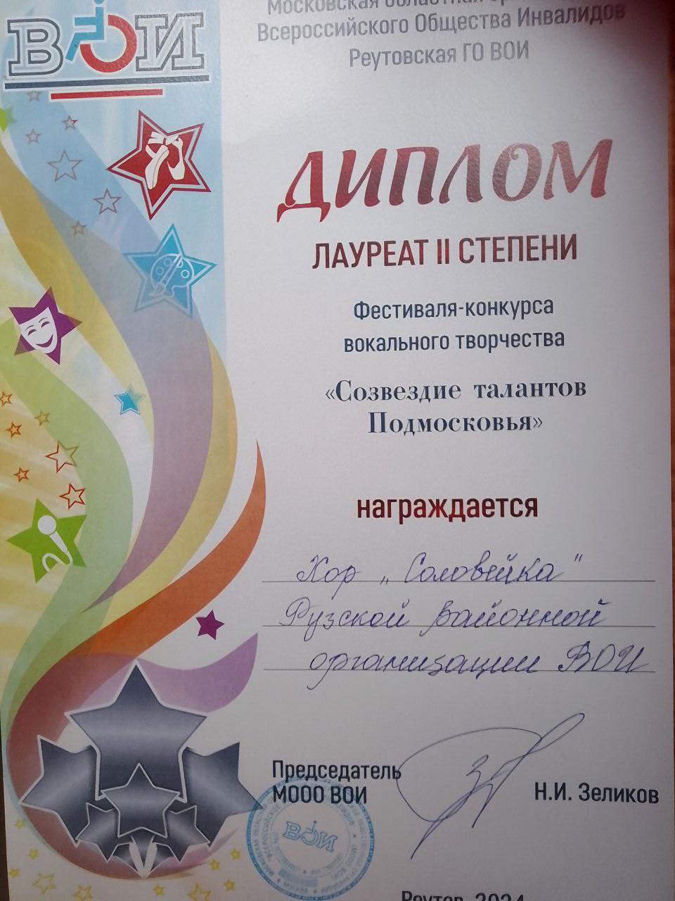 Рузский городской округ представлял хор «Соловейка» Рузской районной организации Всероссийского общества инвалидов. Солистка – Мария Жмурина. Наши земляки завоевали сразу два звания лауреатов II степени и два кубка, также грамотой и кубком была отмечена сама организация.