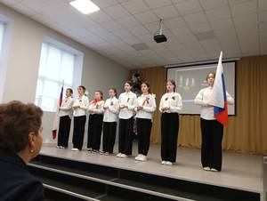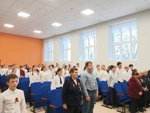 Ученики 8 «б» класса вместе с классным руководителем Еленой Беззубуевой подготовили музыкально-литературную композицию, в которой рассказали о генерале И.С. Дорохове, летчике Г.Т. Невкиплом, выпускнике Виталии Фокине, об отцах, которые сейчас служат или служили на СВО.