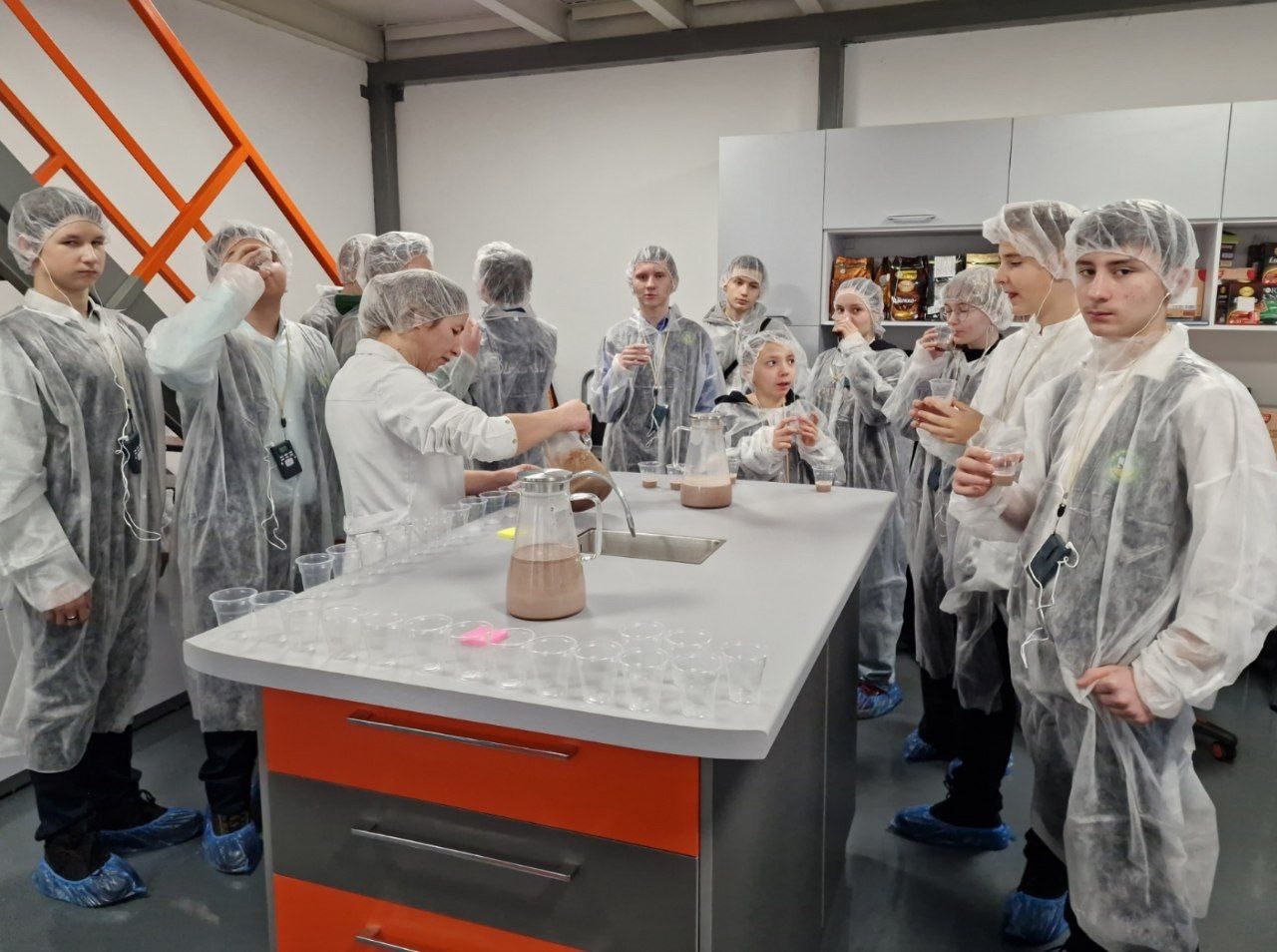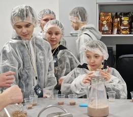 На предприятии ребята пообщались с сотрудниками, побывали на контроле качества продукции, узнали секреты приготовления сублимированного кофе.