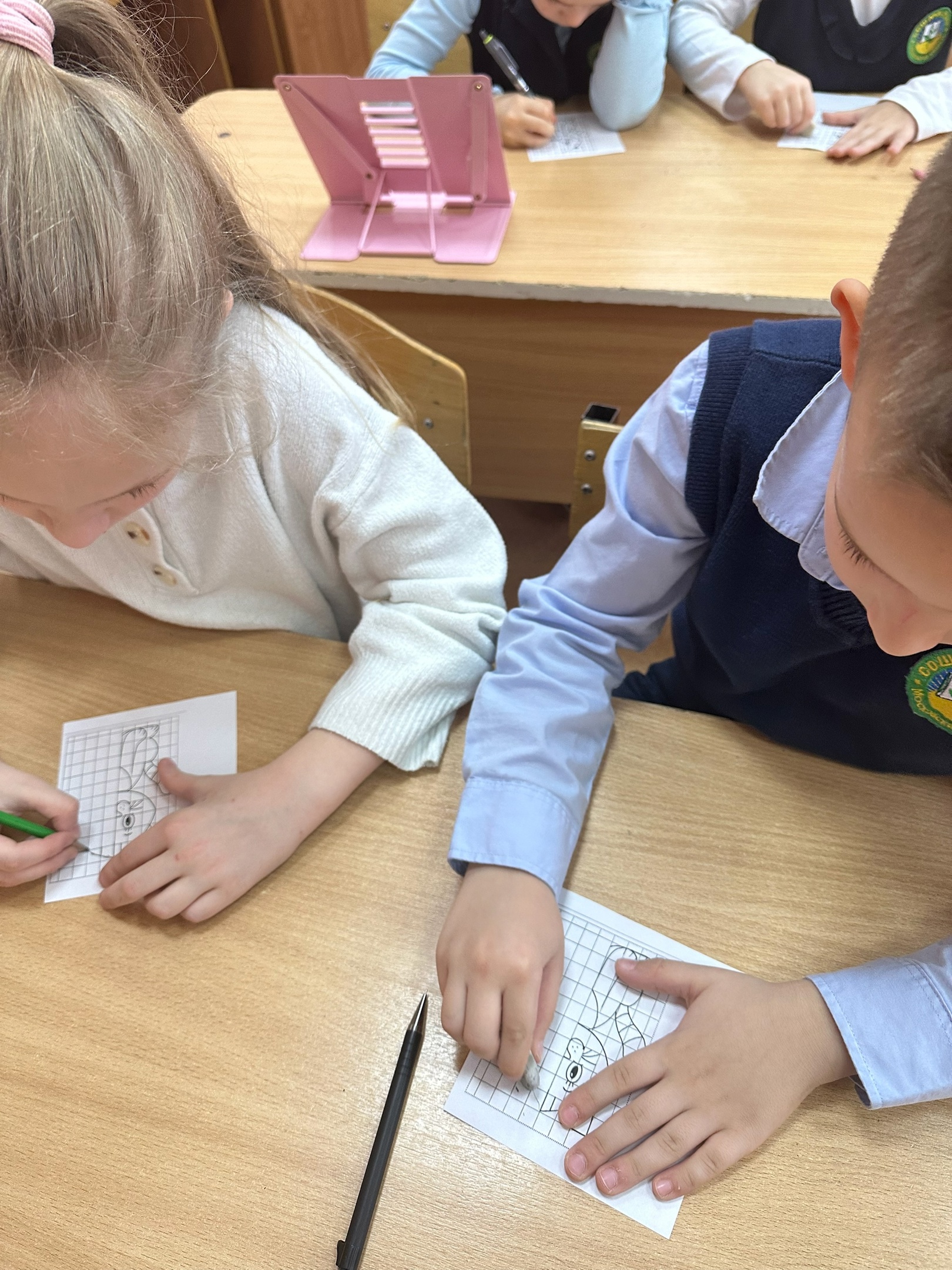 Для школьников сложным и полезным занятием является зеркальное рисование по клеточкам. В ходе него ребята рисовали вторую половину изображения и зеркальное отражение целого предмета. Это задание развивает моторику, координацию, устойчивость, концентрацию внимания, пространственное восприятие и мышление.