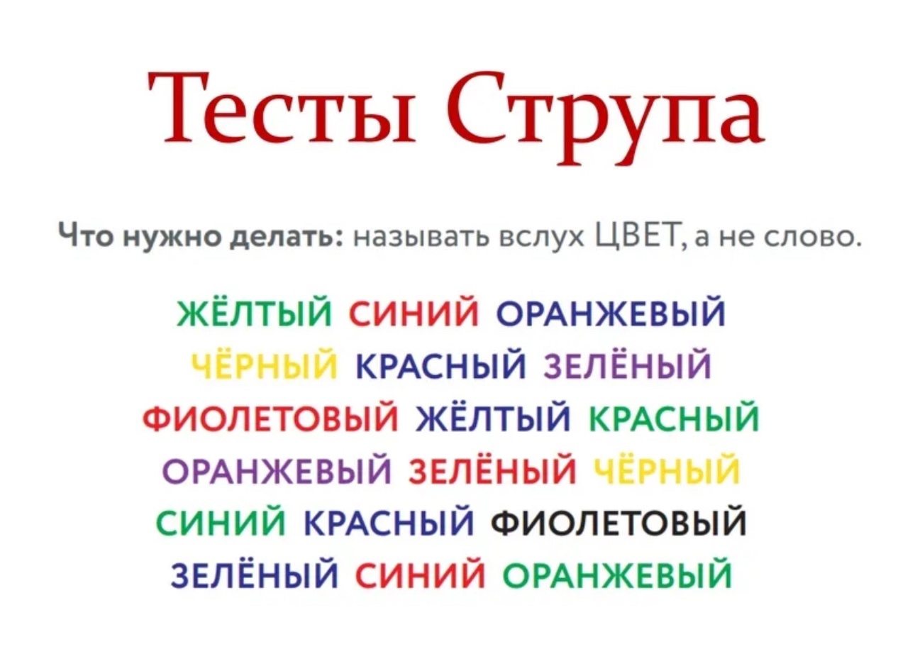 В ходе занятия учащиеся успешно прошли тест Струпа.