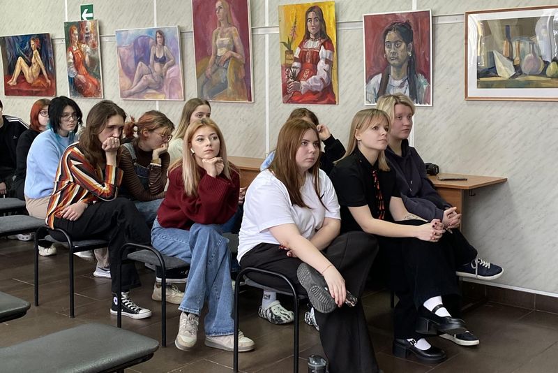 На мероприятии выступил Алексей Масляков, преподаватель Дороховской школы искусств и участник военного конфликта на территории Демократической Республики Афганистан. Он провел беседу со студентами 2-3-х курсов, погружая их в важность исторической памяти, которая необходима не только для нашего общества в целом, но и особенно для подрастающего поколения.