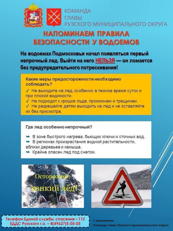 Жителям Рузского муниципального округа напоминают правила безопасного поведения на водоемах в зимний период: