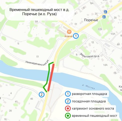 Объезд грузового транспорта организуют в обход Тучково, а пешеходное движение – по временному мосту, который оборудуют удобными подходами, а также разворотными площадками для организации автобусного сообщения, – написал Александр Анатольевич в своём Телеграм-канале. – Схемы движения на 2 автобусных маршрутах Мострансавто (https://t.me/mostransavto_info) будут изменены: