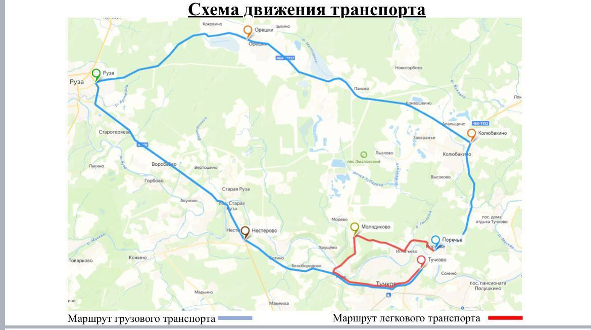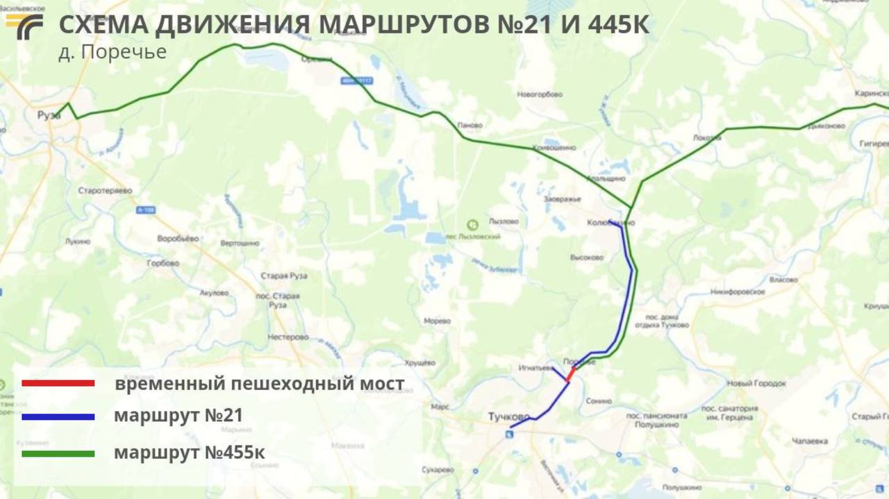 Из схемы маршрута №455к до Москвы исключат участок Руза – Тучково. Автобусы будут следовать из Рузы через Орешки с заездом в Поречье в прямом и обратном направлениях.