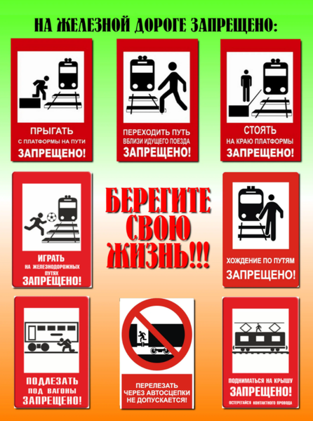 переходя через пути, будьте предельно внимательны и осторожны. Помните, что машинист, заметив человека на путях, не может остановить состав мгновенно – длина тормозного пути поезда составляет около 1000 метров;
