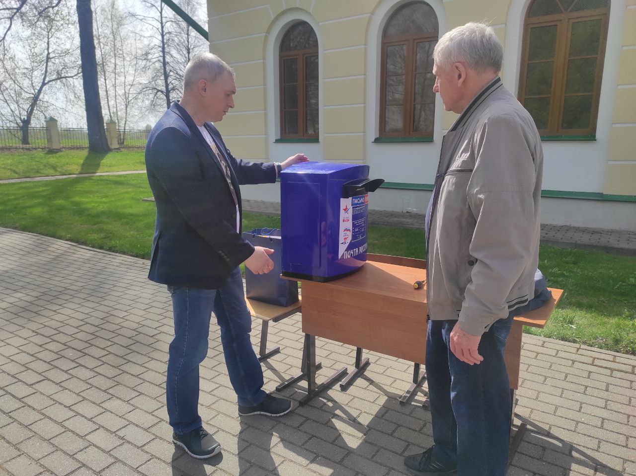 Чтобы письмо дошло до адресата, его необходимо сложить треугольником, как это делалось в годы войны, и опустить в специальный брендированный почтовый ящик, установленный на площадке диктанта.