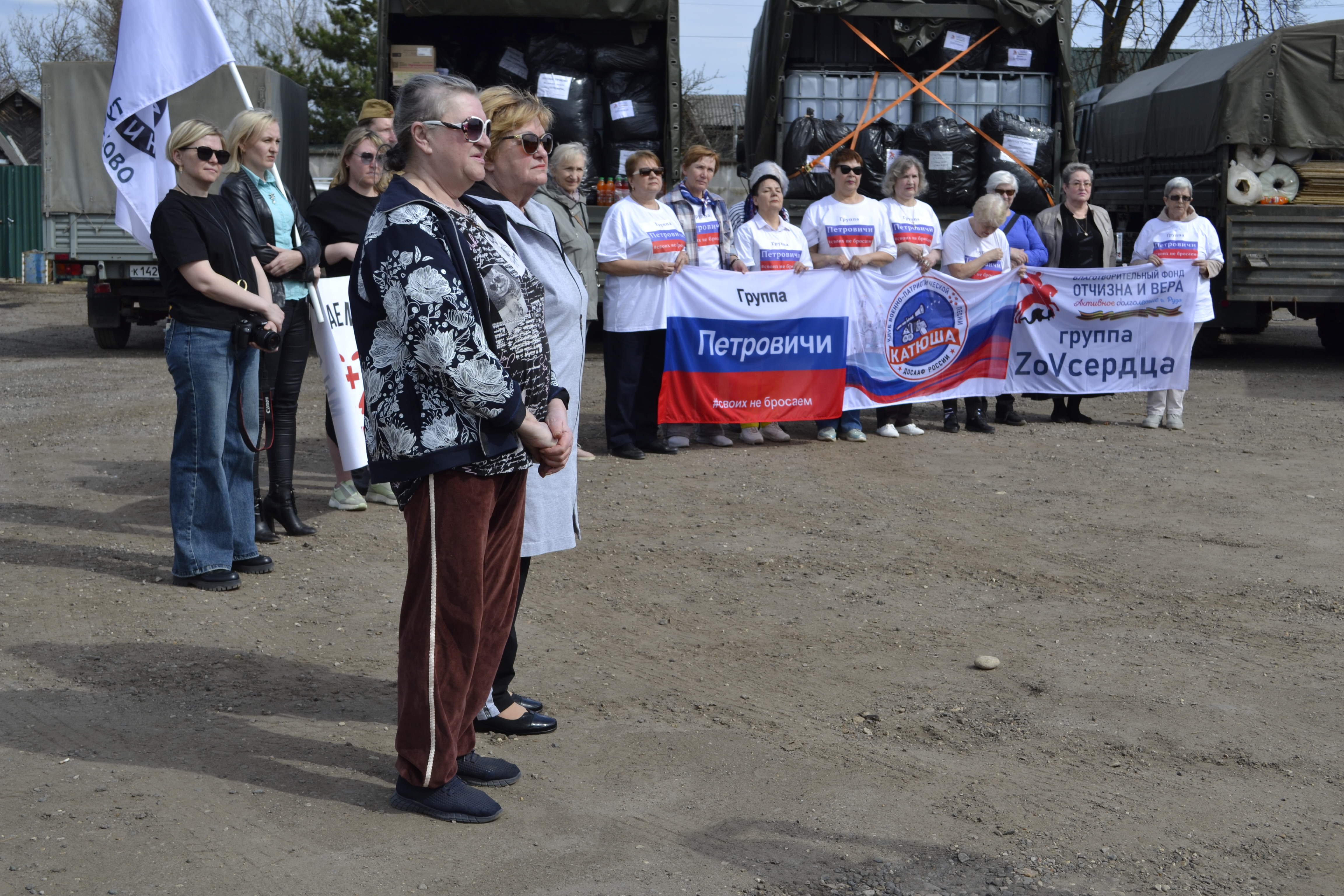 Проводить автомобили с грузом в дальнюю дорогу пришли председатель Совета депутатов Рузского муниципального округа Ирина Вереина, начальник территориального отдела Тучково Виктор Русаков и большая группа единомышленников – трудолюбивые женщины из группы «Петровичи», которые плетут маскировочные сети, прихожане храмов Рузы, группа «ZoVсердца», местные предприниматели, участники СВО, находящиеся в отпуске. Несколько песен времён Великой Отечественной войны исполнила группа «Катюша», которая отправилась вместе с Юрием Дорофеевым на передовую – давать концерты для военных, поднимая их боевой дух.