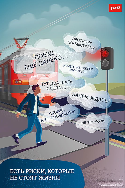 переходя через пути, будьте предельно внимательны и осторожны. Помните, что машинист, заметив человека на путях, не может остановить состав мгновенно – длина тормозного пути поезда составляет около 1000 метров;