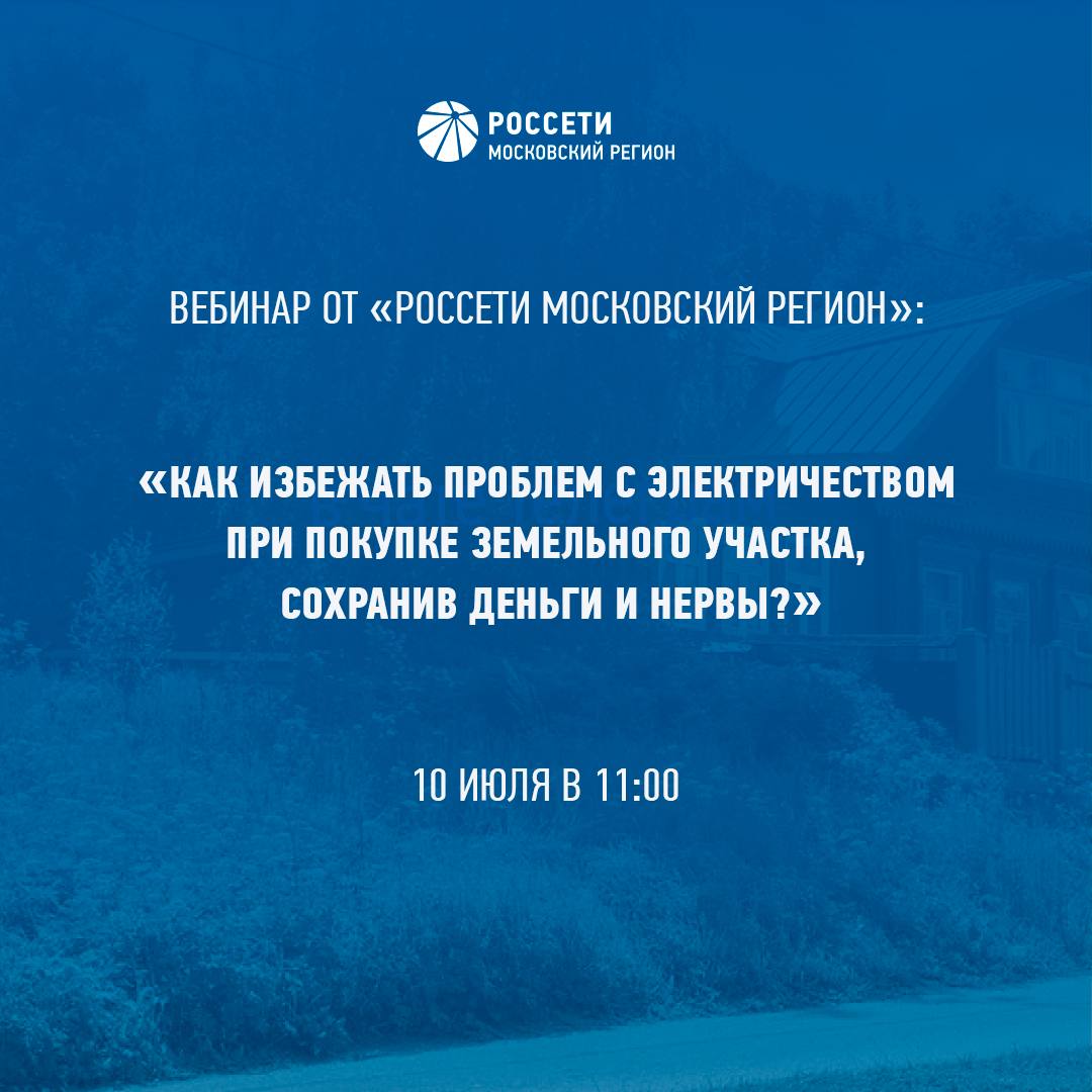10 июля 2025 года в 11.00 компания «Россети Московский регион» проведет вебинар для нынешних и будущих дачников на тему: «Как избежать проблем с электричеством при покупке земельного участка, сохранив деньги и нервы?».