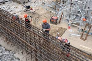 – производится монтаж арматурного каркаса и бетонирование оголовка опор №2 и №3;