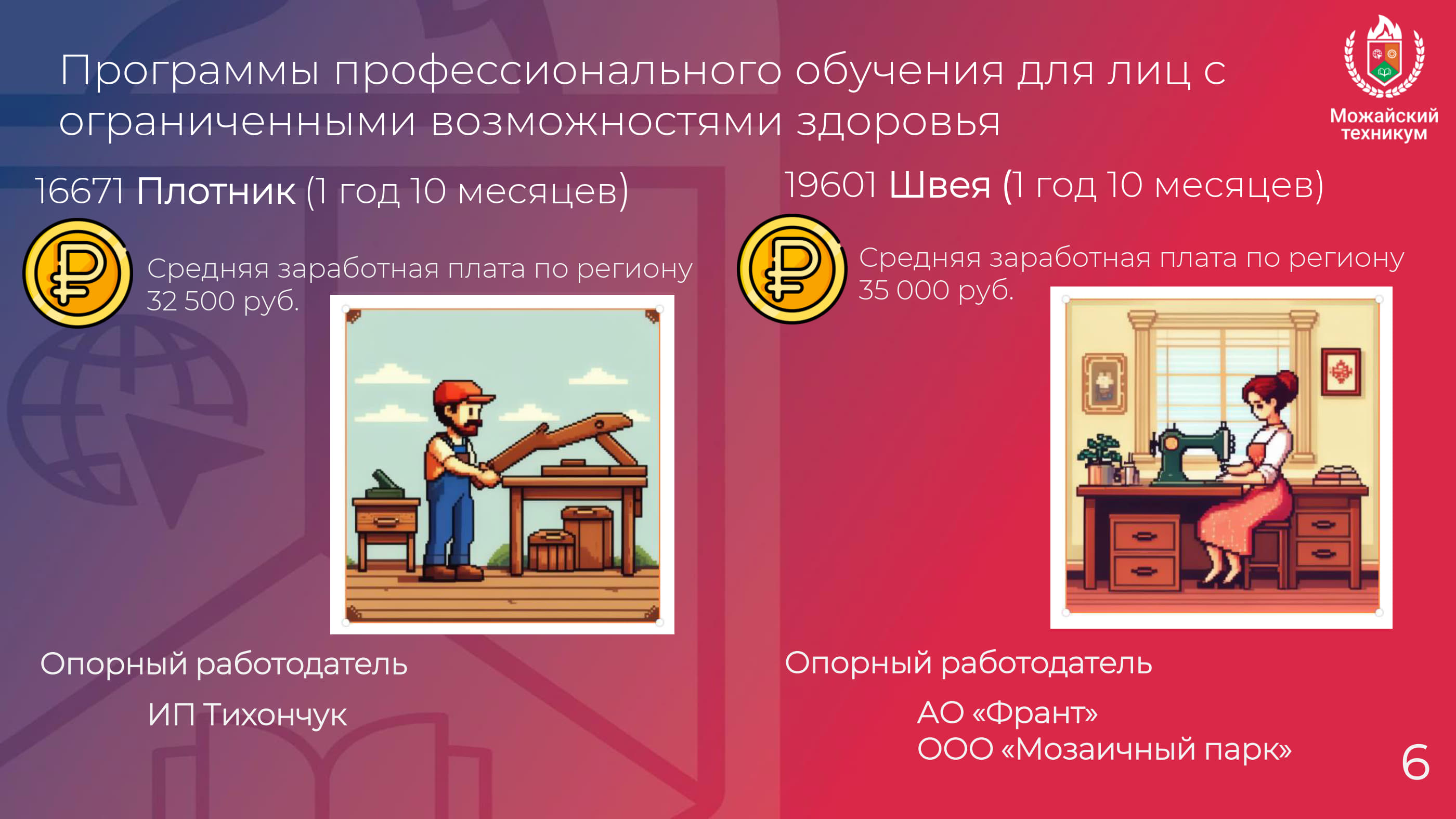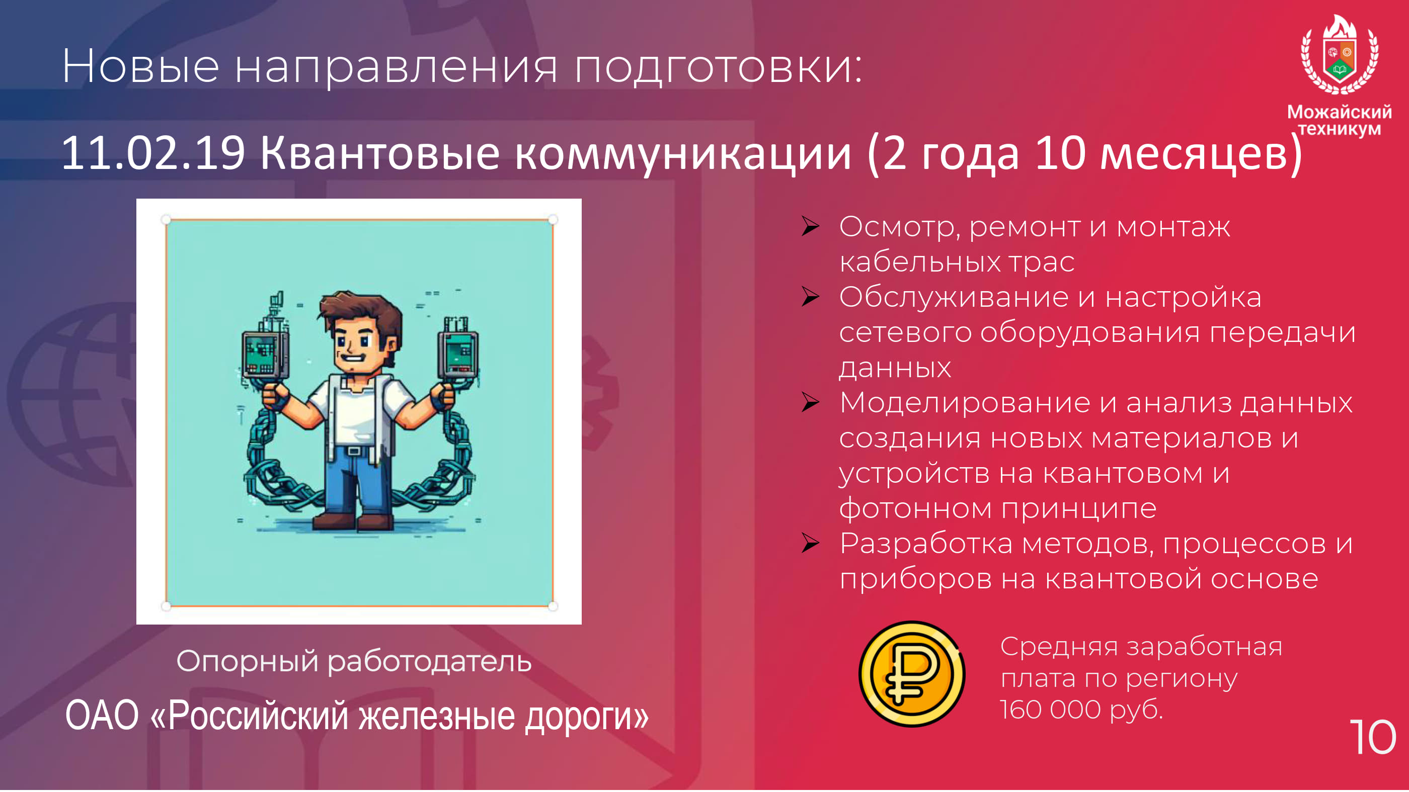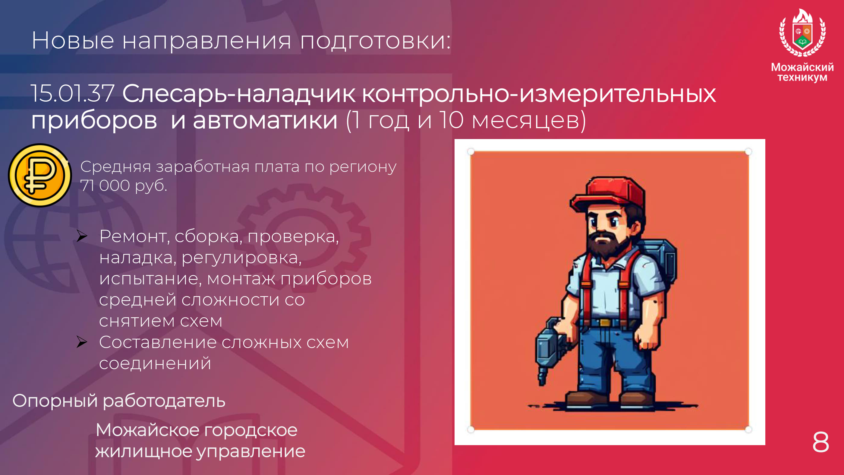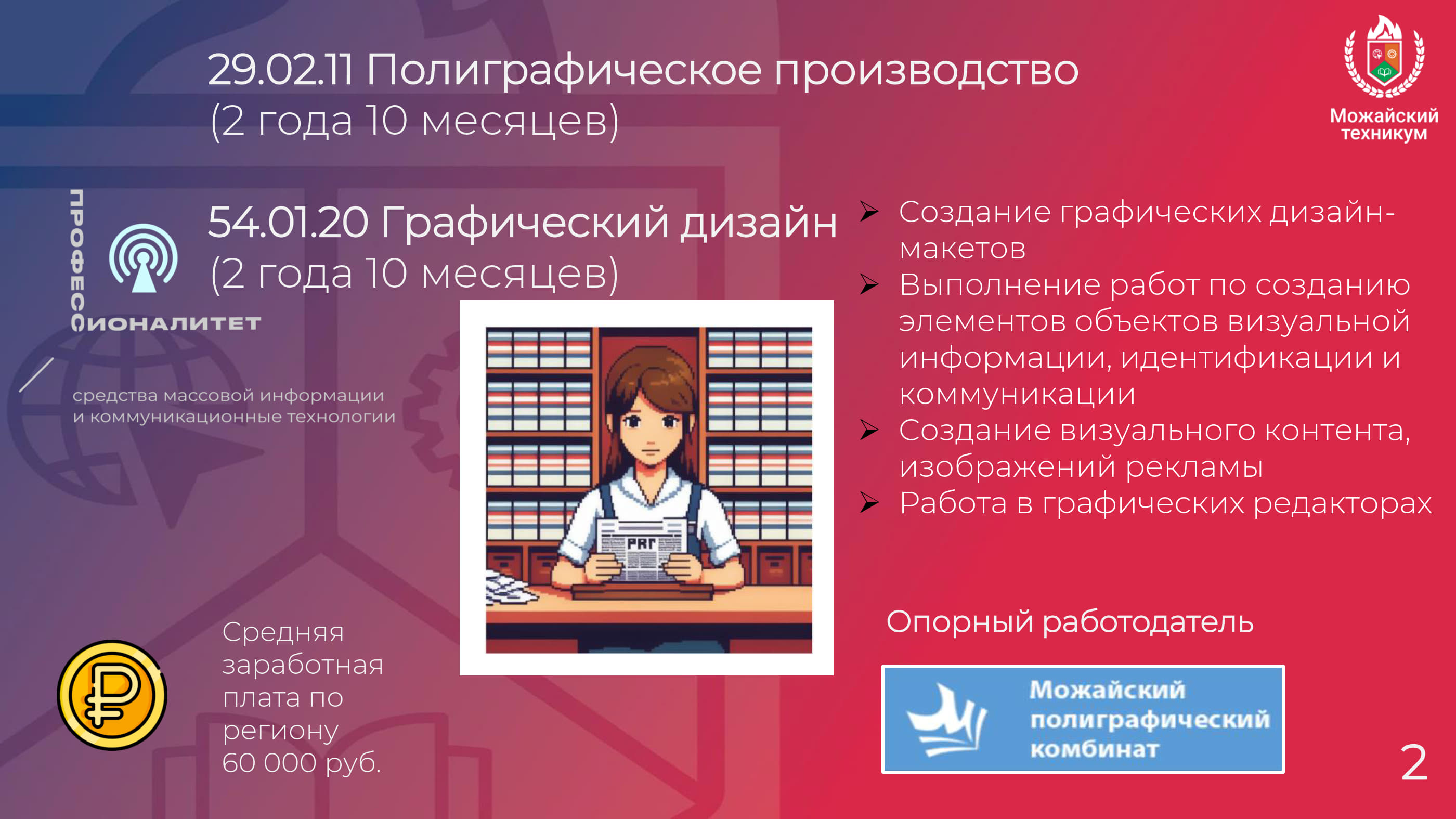 Выбирай любую из профессий себе по душе и подавай документы через Госуслуги или приходи в Можайский техникум с документами, если тебе нужна помощь.