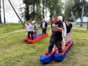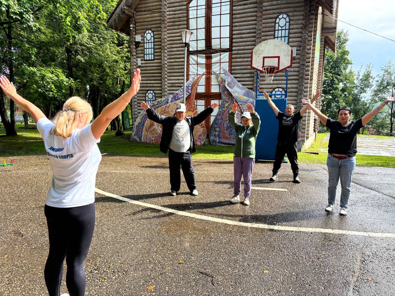 Утро началось с энергичной зарядки «Победа», которая задала тон всему дню. Профессиональный инструктор провел динамичную тренировку, зарядив участников позитивом и бодростью.