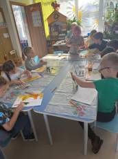 В дошкольном отделении Дороховской школы Рузского муниципального округа снова состоялся урок рисования с Оксаной Водяниковой. На этот раз дети представили историю о ёжике, который бродил по лесу.