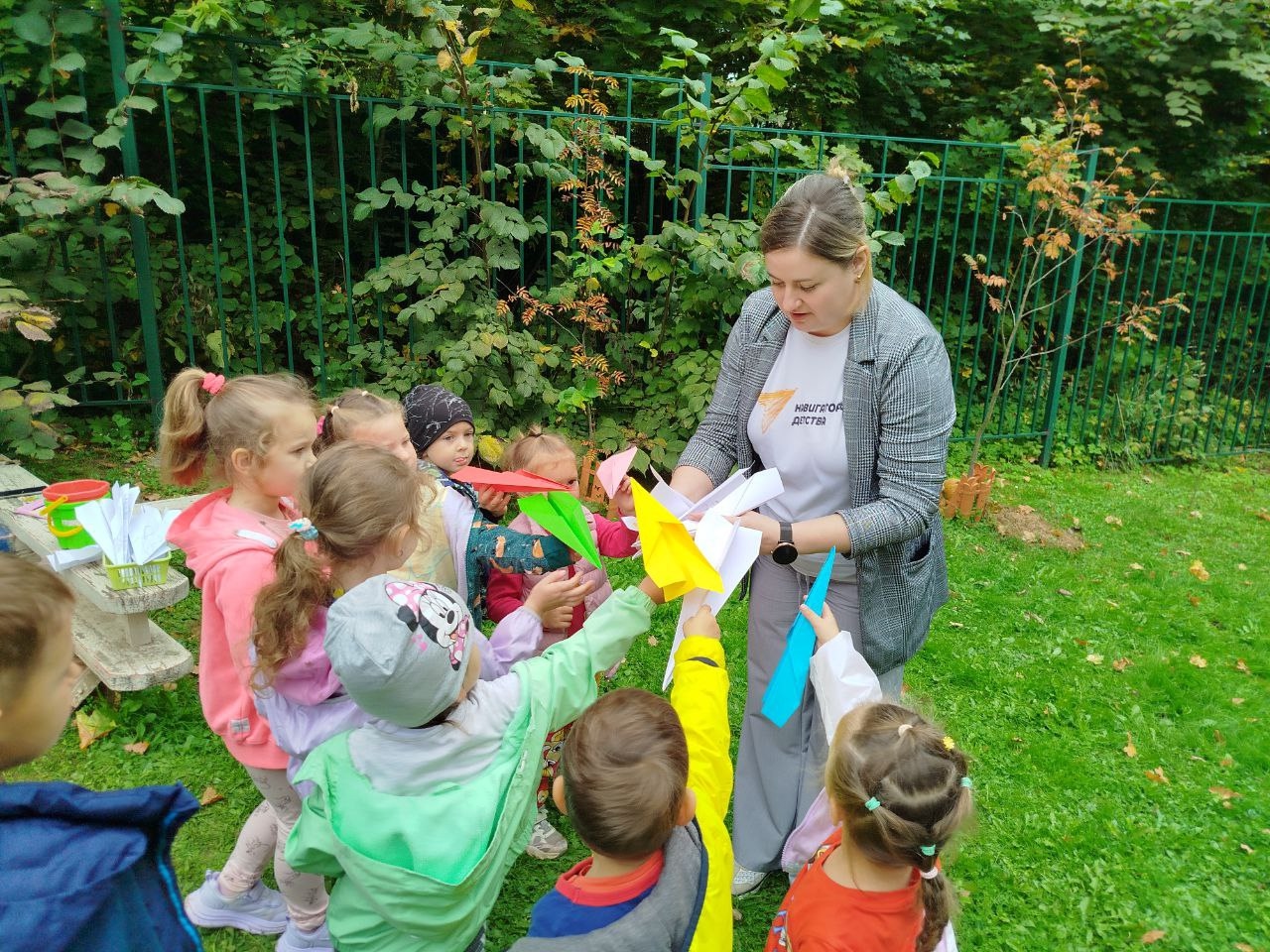 Под руководством советника директора по воспитанию С.А. Макаревич и воспитателя Н.В. Кулинок юные участники проекта смастерили символические бумажные самолетики «Навигаторов детства». Эти трогательные подарки, созданные руками дошколят, были с теплом переданы четвероклассникам — участникам программы «Орлята России», символизируя преемственность поколений и общие стремления.