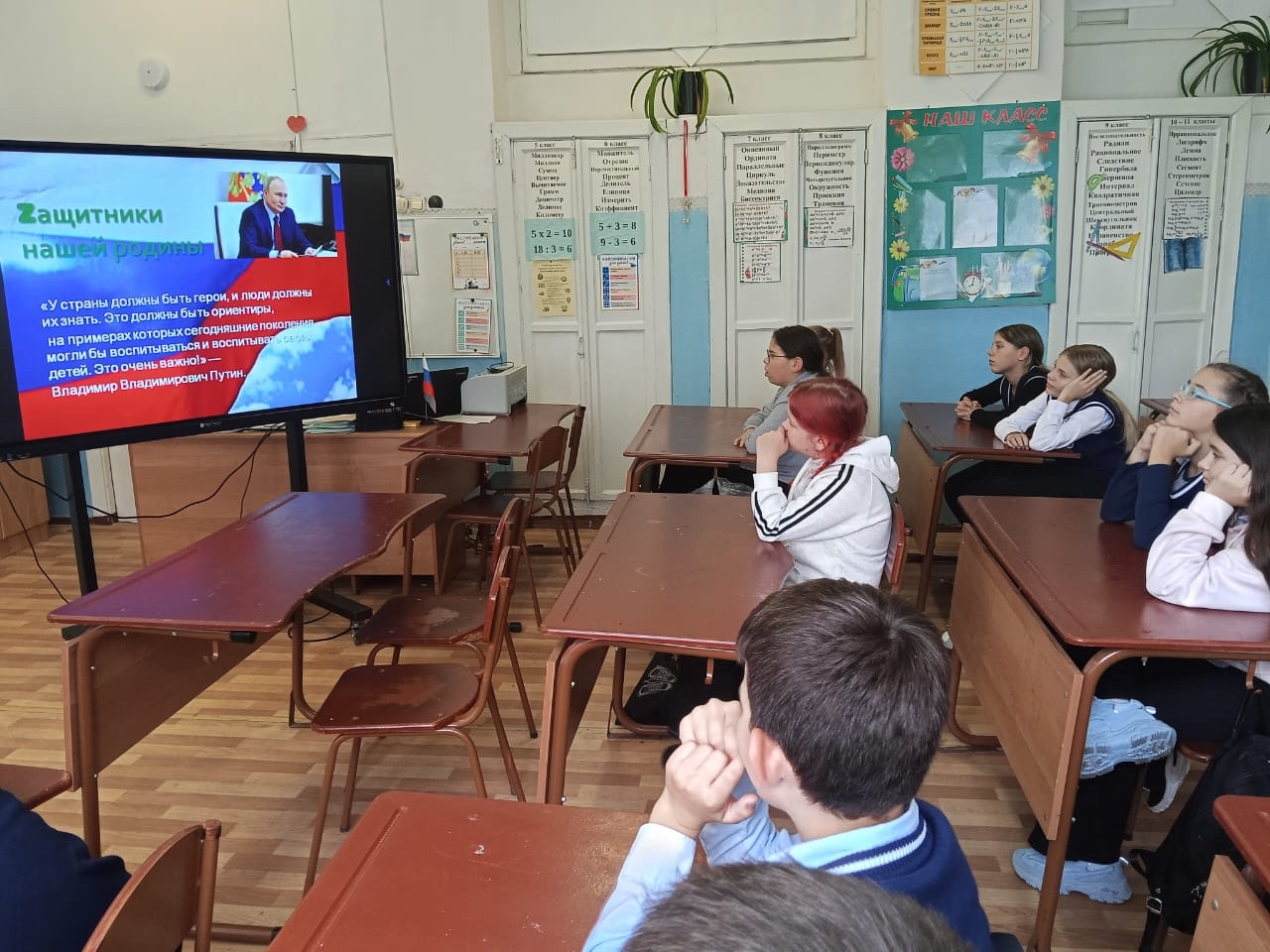 Учащиеся посмотрели мультфильм «Zащитники», в котором в доступной форме рассказывают о причинах СВО, а также видеоролик «Как дети в России помогают бойцам СВО».