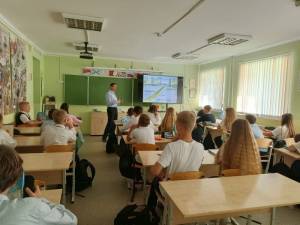С учащимися разобрали понятие «дорога» и какие элементы к ней относятся. Вспомнили правила перехода пешеходами и велосипедистами проезжей части на регулируемых и нерегулируемых перекрестках, а также правила движения вдоль проезжих частей. Обсудили причины, из-за которых происходят ДТП, и как избежать опасные ситуации. Побеседовали об ответственности, которая предусмотрена для участников дорожного движения.