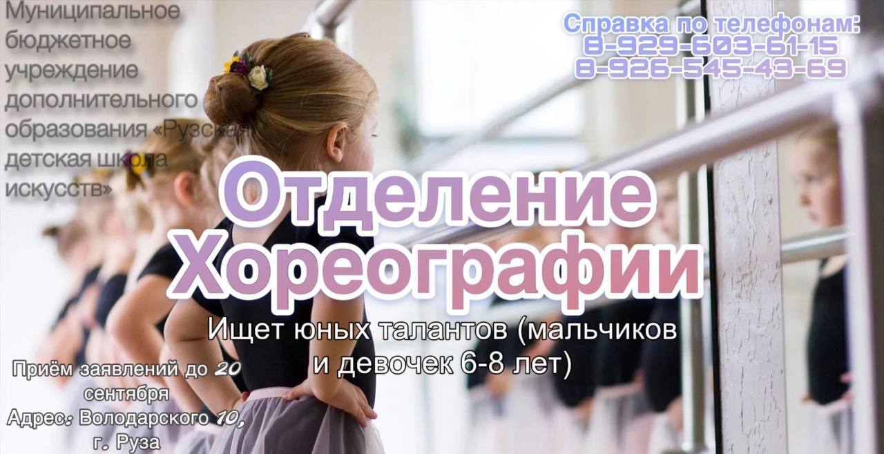 Муниципальное бюджетное учреждение дополнительного образования «Рузская детская школа искусств» объявляет набор в отделение хореографии. Ищем юные таланты, ждем мальчиков и девочек 6-8 лет.