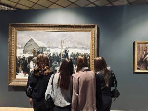 Особое внимание ребят привлекли картины, изображающие сцены боев, жизнь на фронте и в тылу. Каждый экспонат стал поводом для обсуждения: ученики делились своими мыслями о том, каково было жить в условиях войны, как проявлялись мужество и героизм людей.