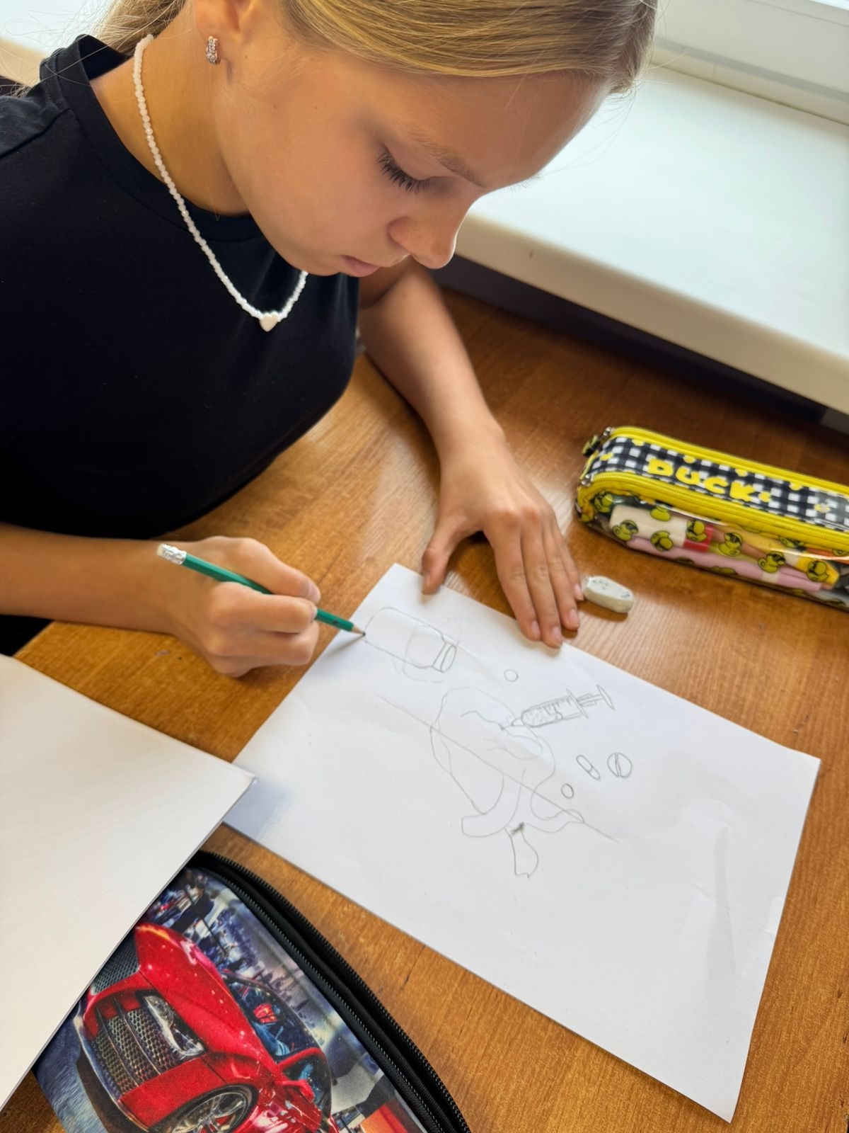 Дети нарисовали рисунки, демонстрирующие отрицательное отношение к потреблению наркотиков. Также они представили работы об активном образе жизни и любимых занятиях.