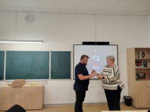 Не обошлось и без торжественной части. Елена Вишнякова вручила благодарственное письмо преподавателю, внёсшему вклад в сохранение исторической памяти и развитию интереса к изучению истории России среди школьников.