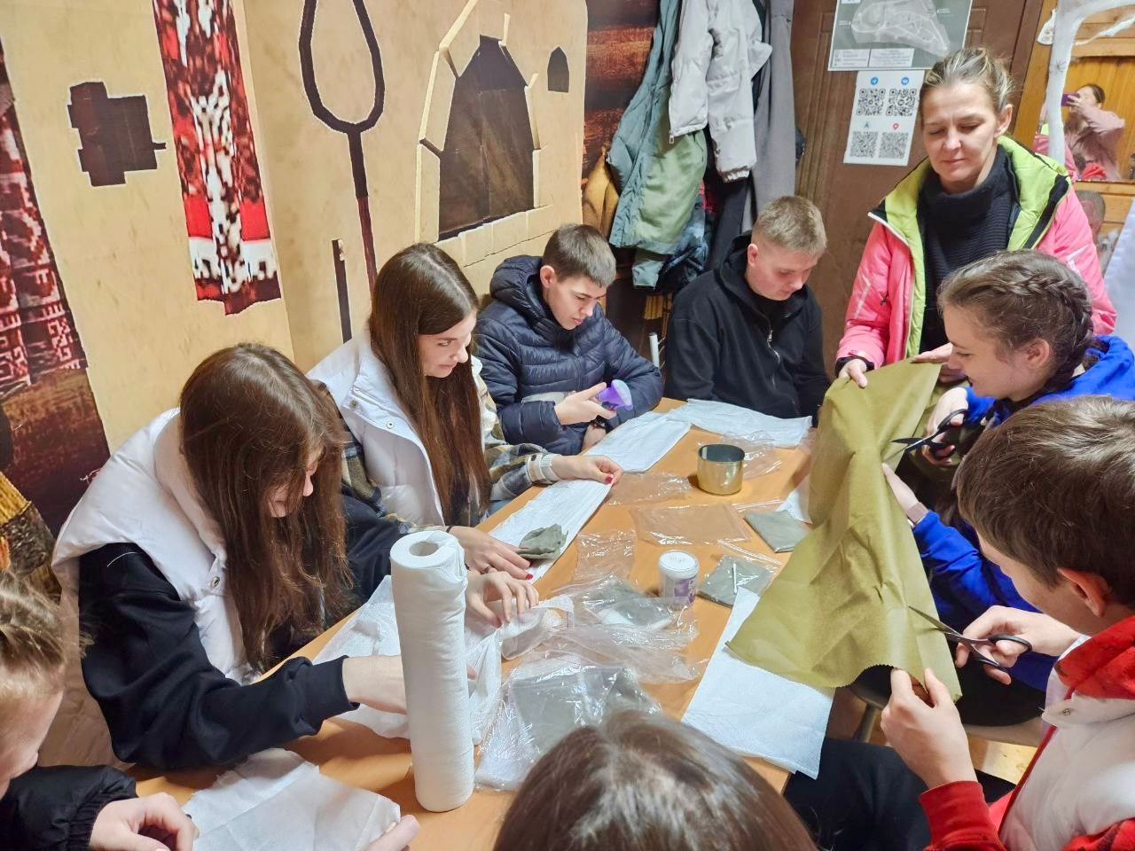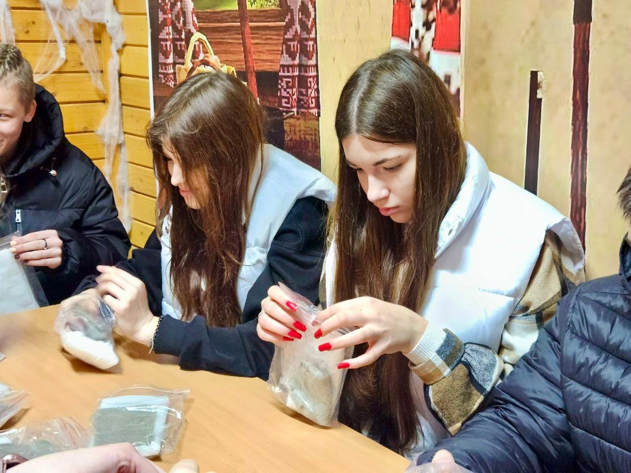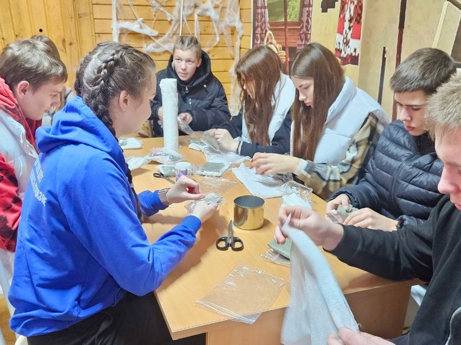 В рамках мастер-класса ребята изготавливали сухой душ, предназначенный для военнослужащих. Участники нарезали материал на небольшие порции, пропитали их раствором, а затем аккуратно упаковали в индивидуальные герметичные пакеты. Эти наборы очень компактны и помогают солдатам поддерживать гигиену в сложных условиях.