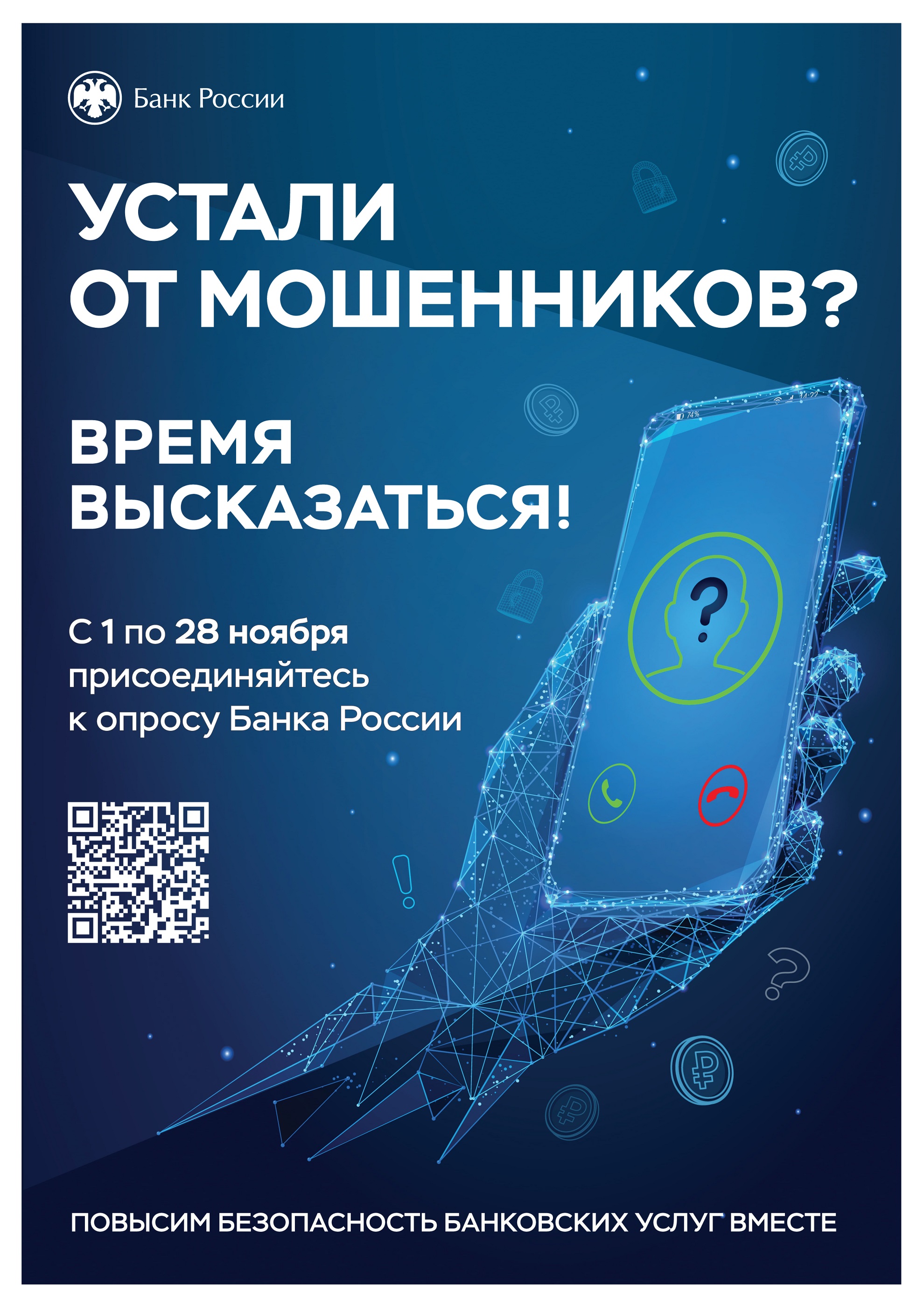 В период с 1 по 28 ноября 2025 года Банк России проведет опрос на тему «Степень удовлетворенности населения уровнем безопасности финансовых услуг, оказываемых организациями кредитно-финансовой сферы».