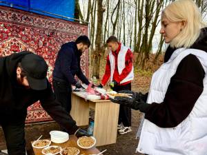 В рамках мероприятия «Россия. Родина. Единство» активисты местного отделения «Молодой гвардии» совместно с руководителем Ассоциации ветеранов СВО Подмосковья по Рузскому муниципальному округу раздавали угощения для посетителей парка культуры и отдыха «Городок».